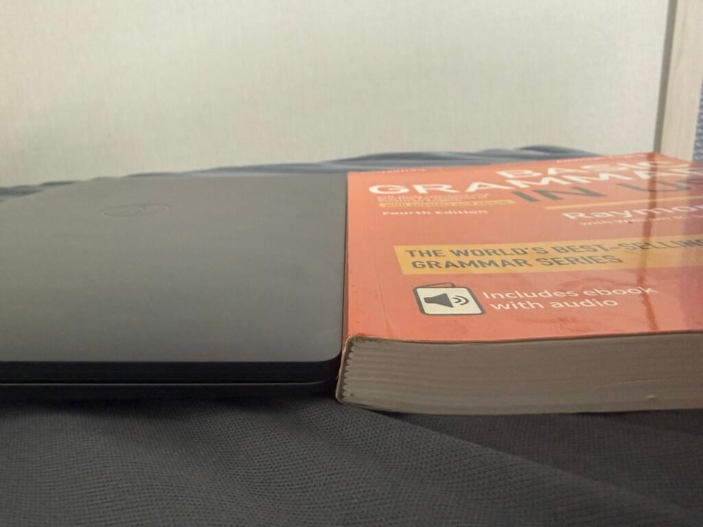 아래는 xps9320 모델과 책을 같이 찍은 사진인데 두께가 일반 책보다도 훨씬 얇습니다. 사이즈도 거의 A4용지 크기에요. 13.4인치 사이즈 참고하실 분들을 위해 사진 남깁니다.